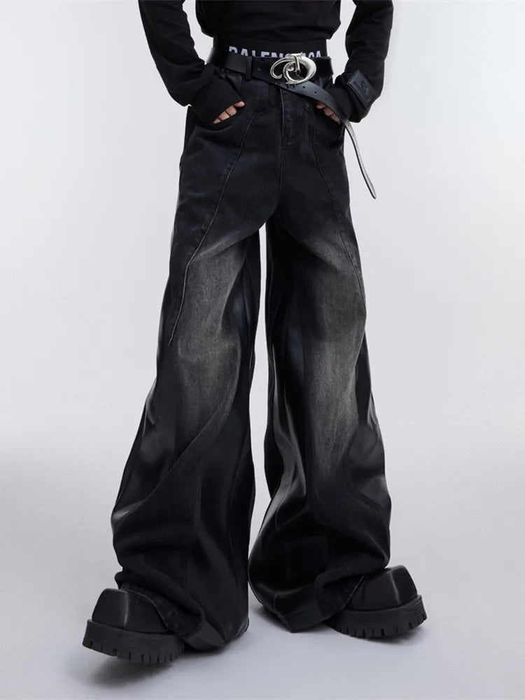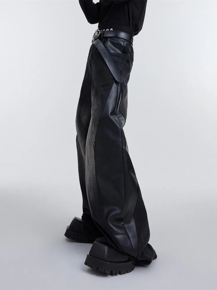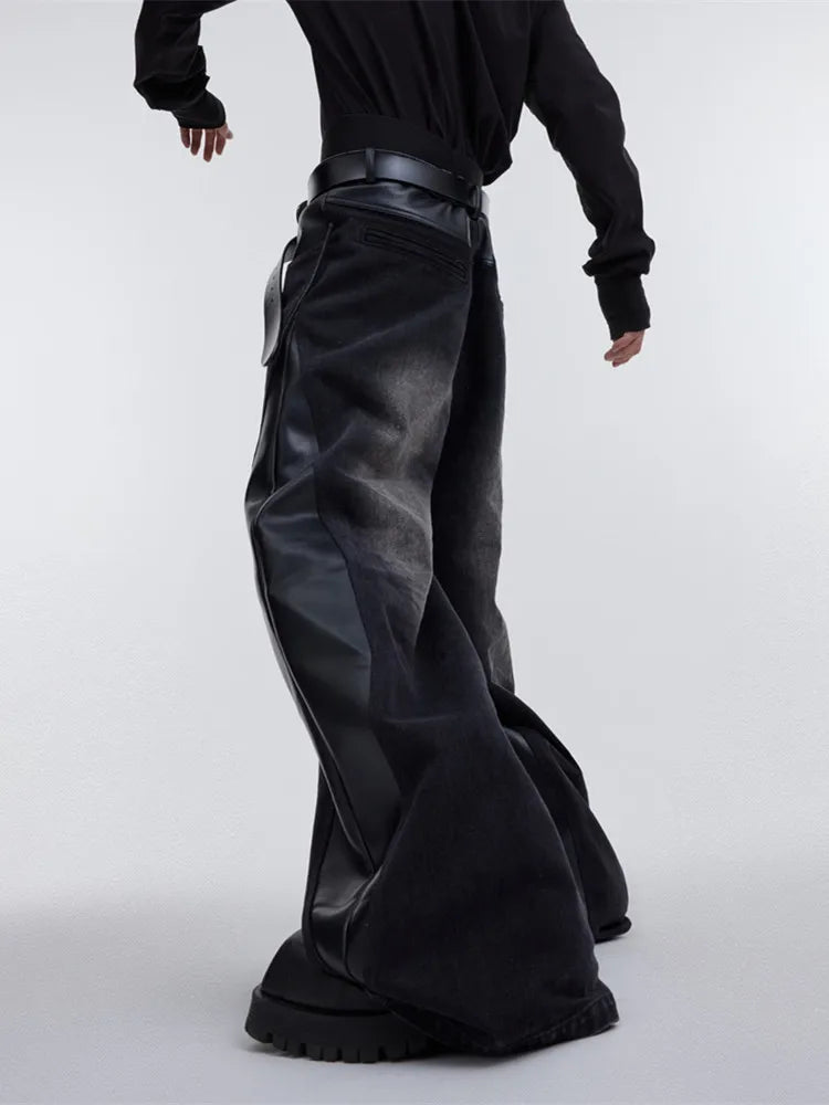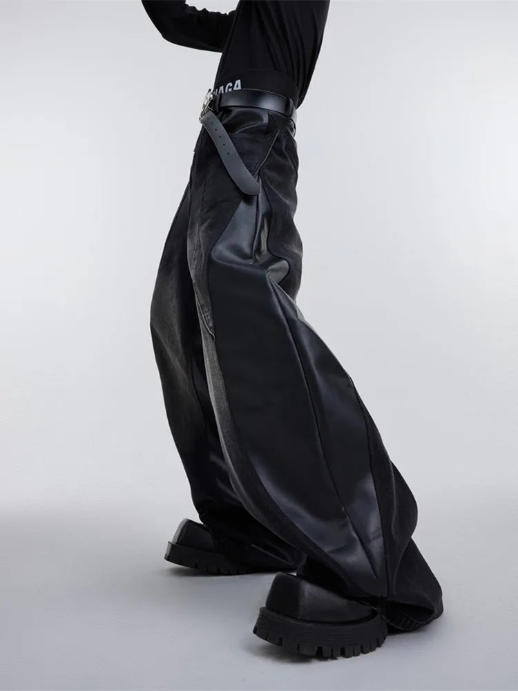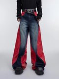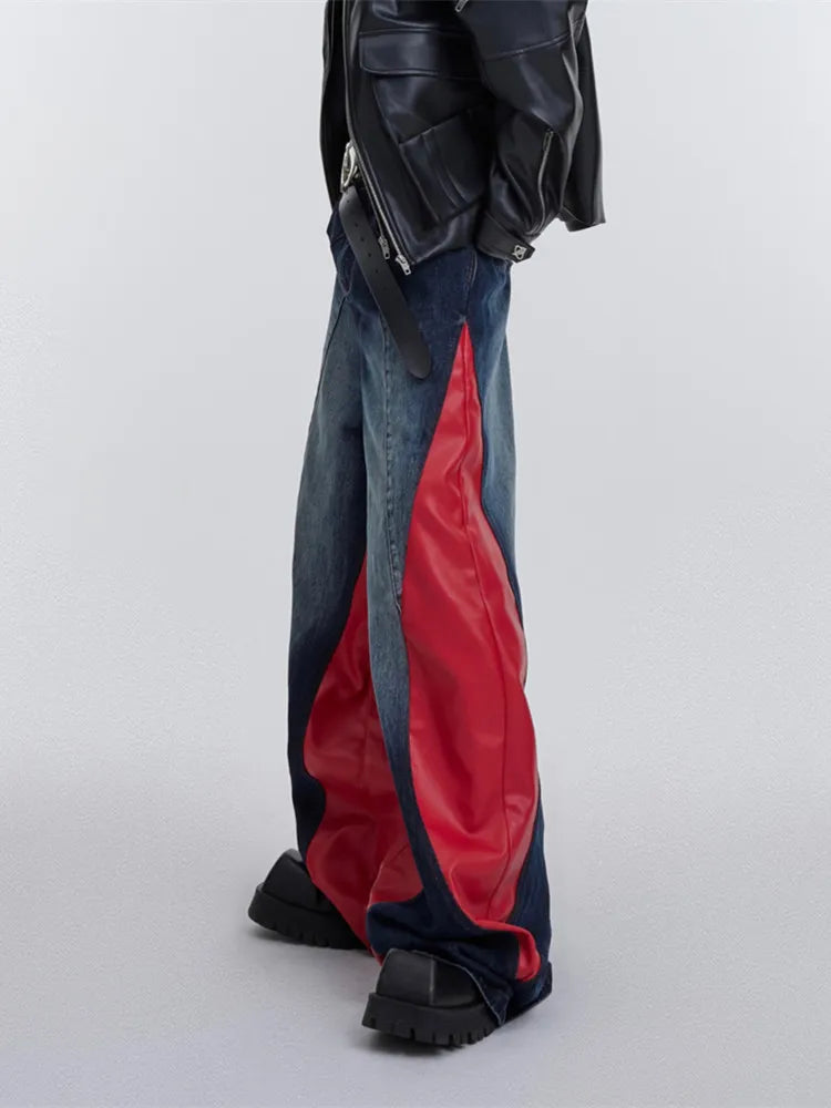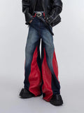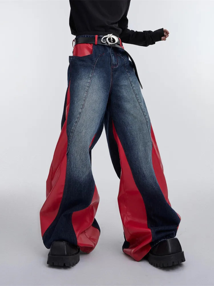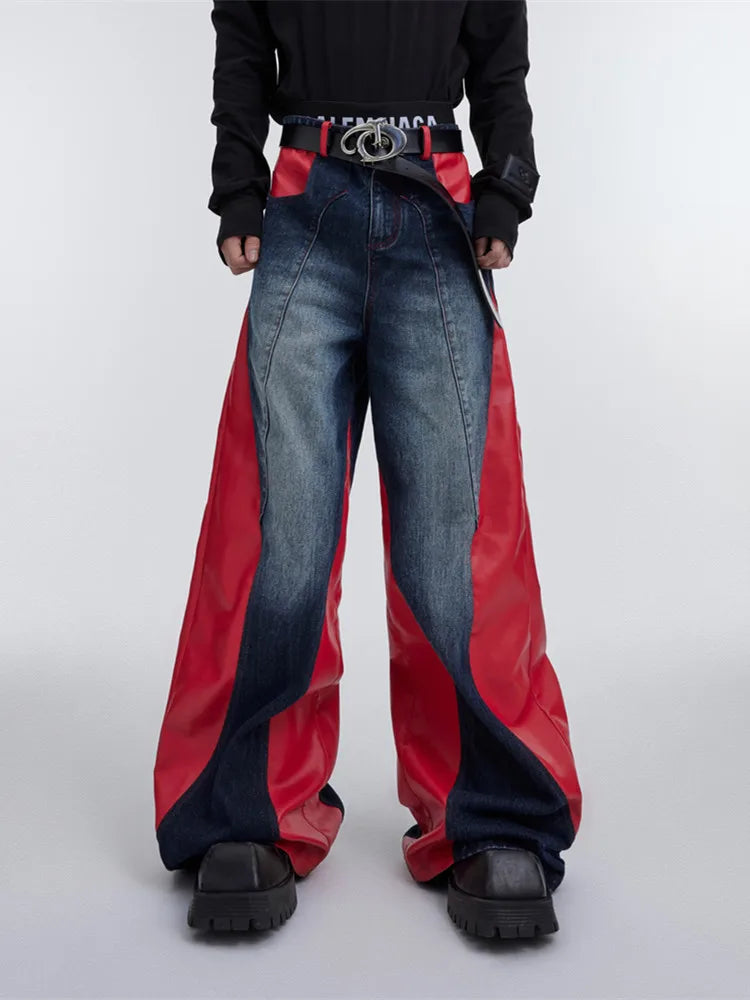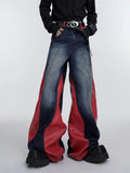 Jeans larghi patchwork Y2K da uomo | Streetwear in pelle rossa