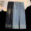Ignite Your Streetwear Game. Turn up the heat with our Y2K Vintage Flame Printed Jeans. Designed for the bold and the trend-conscious, these baggy denim trousers feature a striking flame and ombre colorblock print that screams hip-hop attitude. Crafted with a "softener wash" for immediate comfort and a durable midweight feel, they offer the perfect loose, straight-leg silhouette that defined the early 2000s. Whether you're skating, dancing, or just hanging out, these jeans ensure you stand out from the crowd.